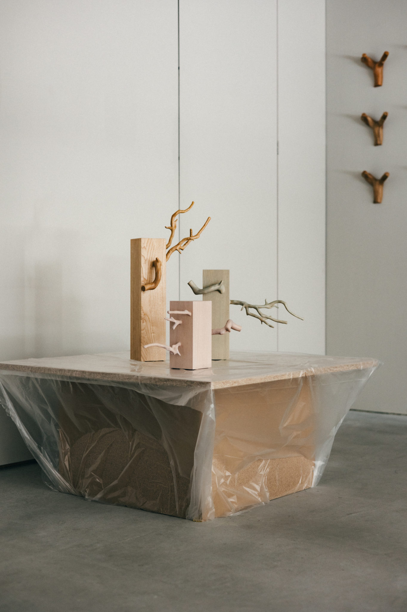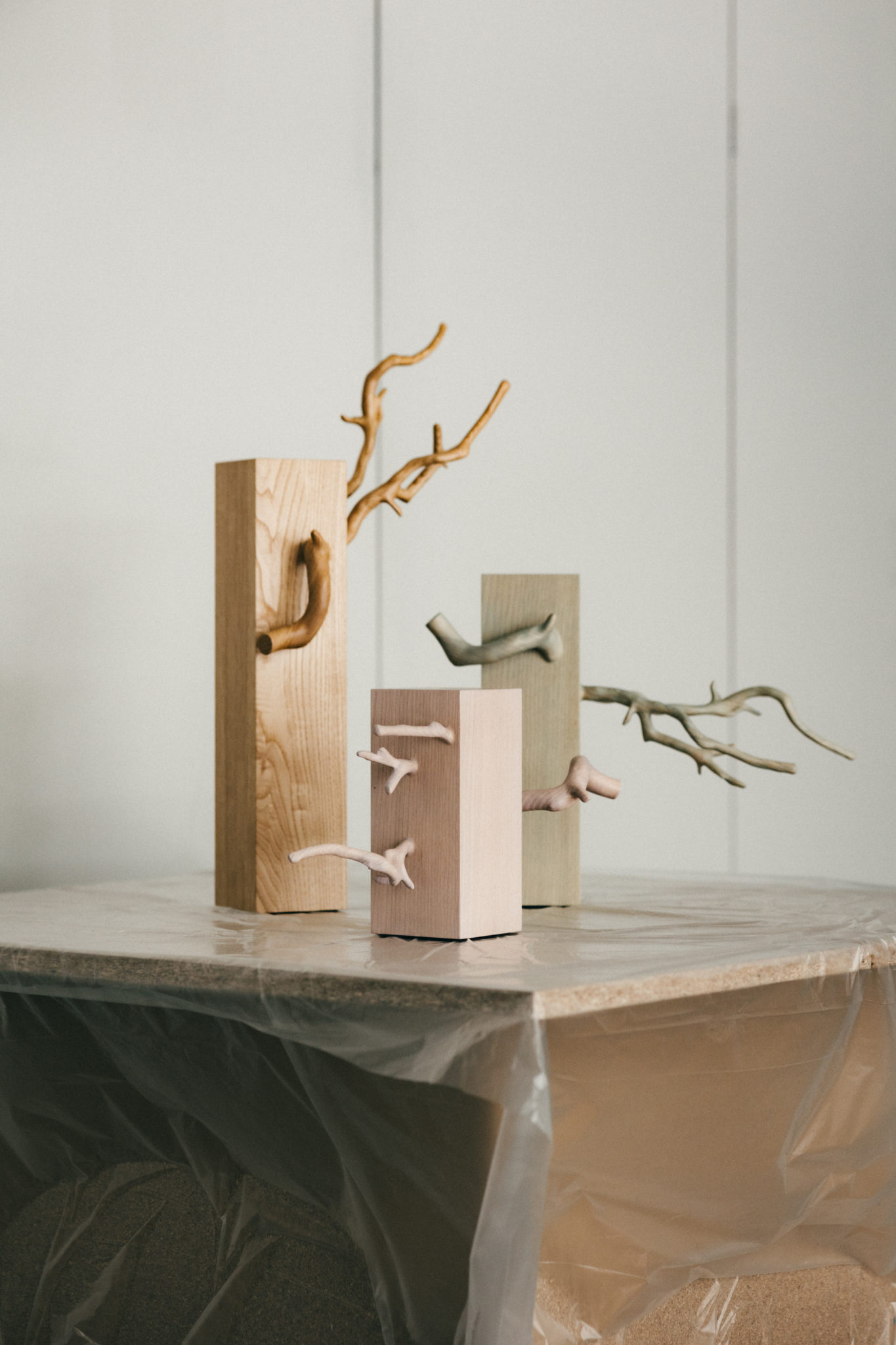At first glance, they are nothing more than ordinary branches with no apparent value. Yet they were presences that held the potential to become fragments of ideas or triggers for creation—objects that carried, for me, a kind of value without reason. It is much like the feeling anyone experiences when picking up a favorite stone or shell by the sea or along a riverbank and bringing it home for no particular reason.