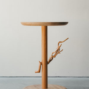 The organically layered lines of a branch were 3D scanned and applied directly, in their original form, to the table’s support structure. It functions both as a table and as an object. The supports are crafted from Japanese zelkova, walnut, and sapele, each presented in its natural wood color. For the tabletop, chestnut—lightweight yet strong—was selected, while the base is made of oak, chosen for its weight and hardness. Through these material choices, the functional performance of the product has been carefully considered and refined.